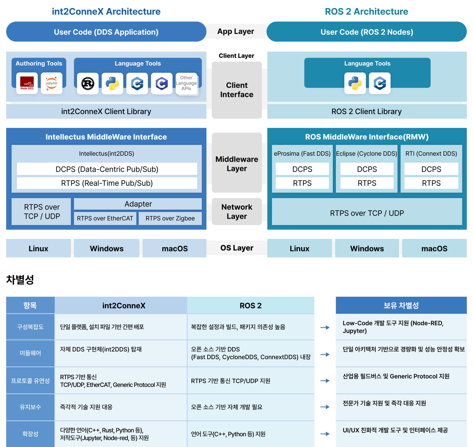 다양한 미들웨어 플랫폼 간에 원활한 상호 운용성을 지원하여 DDS 및 ROS2 환경 전반에 걸쳐 통합 시스템 연결이 가능합니다.